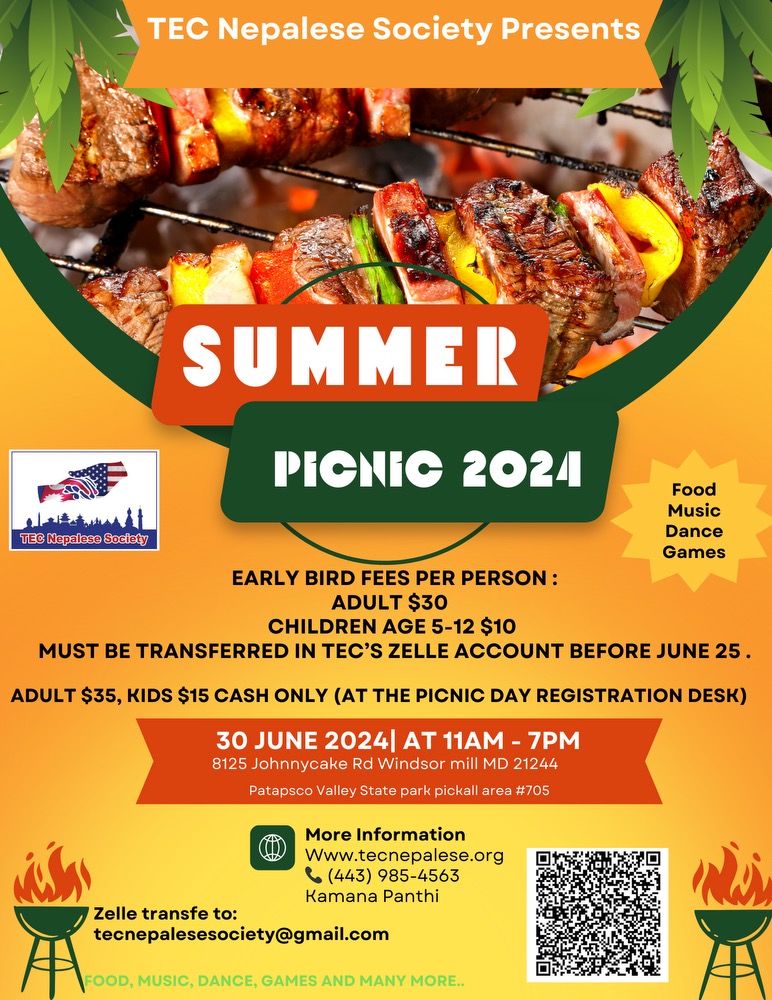 TEC summer Picnic 2025 यहि July 20 Sunday का दिन हुदैछ। सबै जना लाई निम्ता छ। बिदा मिलाएर राख्नुहोला ॥ एकदमै रमाईलो हुनेवाला छ।